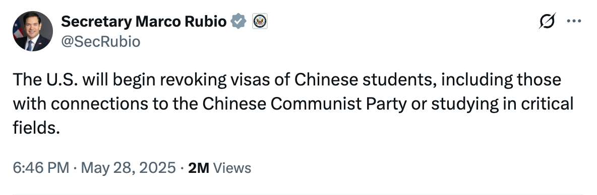 🚨 2. Secretary of State Marco Rubio Targets Chinese Students
