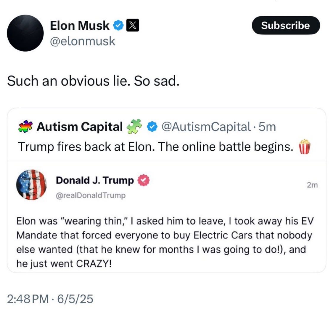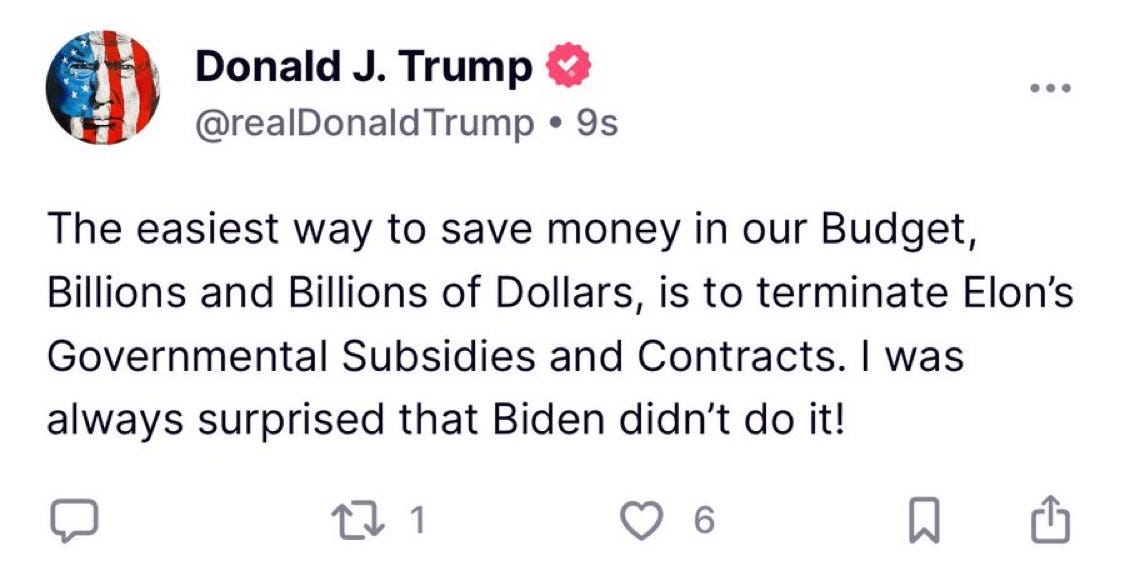He followed up by threatening to cut Elon’s government contracts.