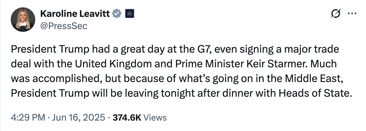 In addition, multiple outlets are now confirming that Trump will be leaving the G7 summit early.