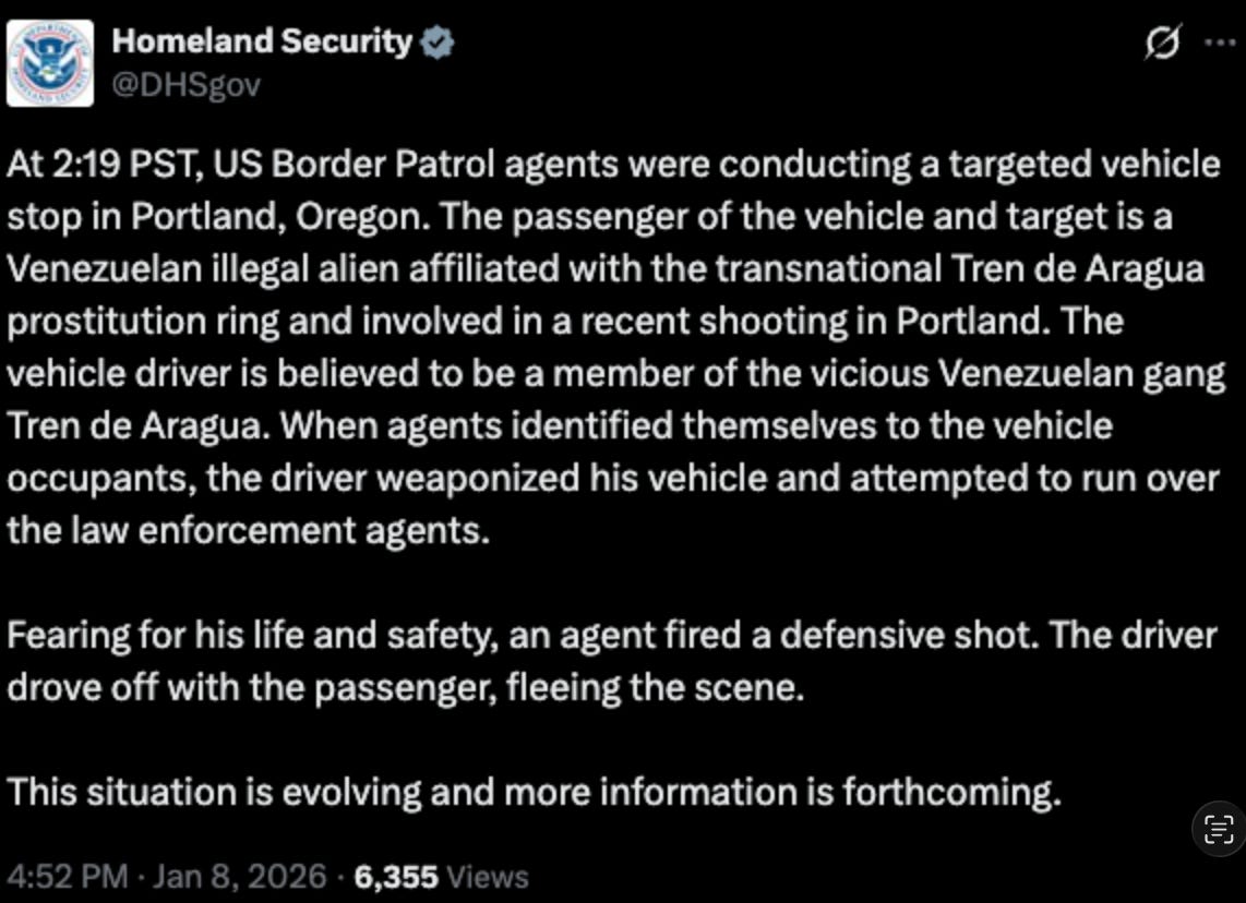 We have a major development this evening. Federal immigration agents shot two people in Portland Thursday afternoon in an incident now under investigation by the FBI, according to a now-deleted tweet from the FBI. I will continue to provide you with updates all night on this page, so please keep coming back to this article as I update it, if you want to support my work, subscribe today: