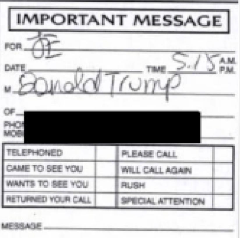 One message is particularly notable: it indicates that Donald Trump called Jeffrey Epstein. The call time is recorded as 5:18. No date is listed, and no explanation is provided for the call.