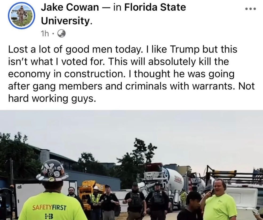 Republicans in Florida begin having buyer’s remorse for voting for Donald Trump after ICE raided a construction site, detaining more than 100 migrants in the process. Jake Cowan, one of the managers/owners of the construction site wrote that Trump’s raids “will absolutely kill the economy in construction.”