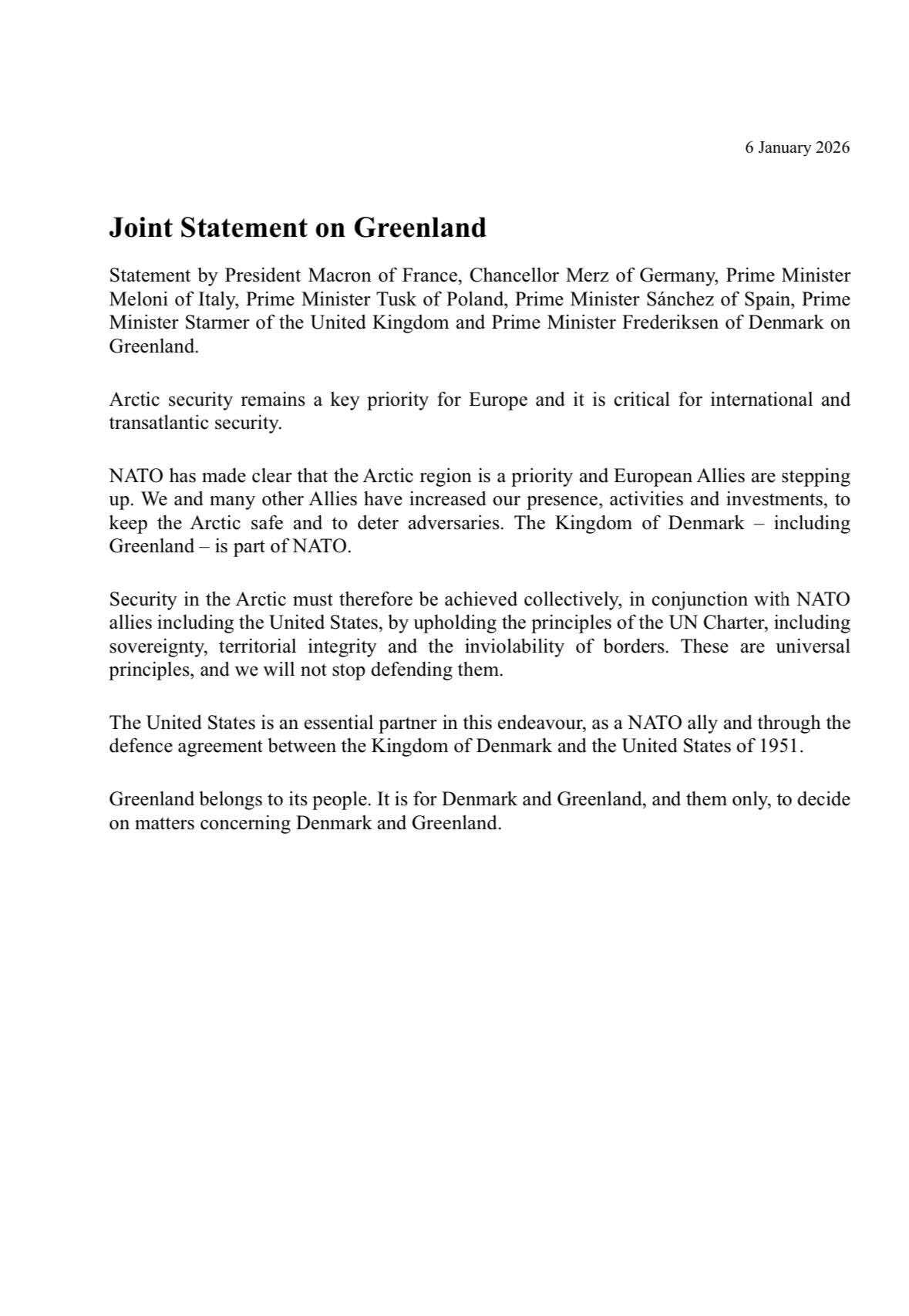 European leaders issued a joint statement this morning affirming that only Greenland and Denmark should have a say over what happens to Greenland. They urge Donald Trump to respect Greenland’s sovereignty.