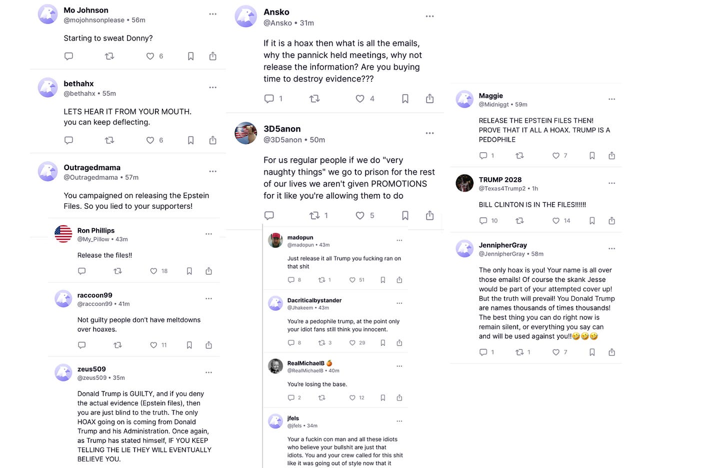 Good morning everyone. Donald Trump has finally broken his 36-hour silence, dismissing the Epstein files as a “hoax,” and his supporters are erupting in anger, turning on him online and demanding the full release of the records. At the same time, Ghislaine Maxwell is reportedly receiving even more preferential treatment in prison, including unlimited toilet paper, and Speaker Mike Johnson is now moving to fast track a vote on releasing the Epstein files as early as mid-week next week.